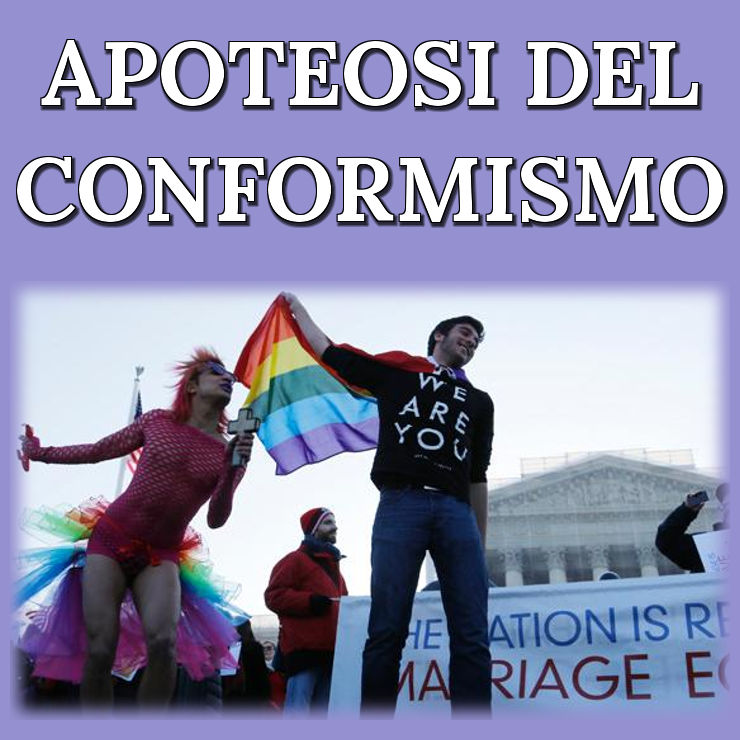 Pensi davvero, Leonardo, che si tratti di “conformismo e ipocrisia”? Sarebbe questa la spiegazione dell’accadere odierno, nella sesta parte del Pianeta? Il “conformismo”, per l’ismo che usi, non è certo il conforme, esso appartiene al lunghissimo corteo degli idealismi che si sono formati dalla Gloriosa Rivoluzione inglese in poi, gli ideali fioriscono e le loro ideologie prontamente li sostengono, dallo Stato con gli Statalismi è tutto un fiorire di idealismi. Ipocrisia? Su cosa? Nascondono qualcosa? Come, ad esempio, la vera natura di Risorgimento e Resistenza italiane? No, a me non pare, a me pare che mostrino tutto, fin troppo, nulla celano di ciò che una volta, era assai poco, si era soliti nascondere con accuratezza, timore e pudore. No, Leonardo, la denuncia è assai buona e, come al solito, scritta benissimo, ma le cause sono ben altre ed, oggi, occorre risalire alle cause, depositate in millenni di storia, almeno da dopo la morte di Socrate! Non ce la faremo mai a riportare nel mondo Giustizia e Bellezza se non si pone mano a questa opera di scavo profondo. Io ci tento, un discreto numero di “mi piace”, ma, poi, Viva Papa Francesco! A me pare questa l’ipocrisia, adorare un Papa che ha ormai dato per scontata e assodata la “morte di Dio” e, invero, quel Dio è morto, pace sia alla sua anima, se l’aveva, vediamo se giunge un Dio, solo Egli può salvarci direbbe M.Heidegger. Credo parlasse bene. Invano? Non so! Io ci tento! Come? Qualcosa, non poco, è uscito, il finale è in corso. Servirà? Non so, dipende da quel Dio a venire!